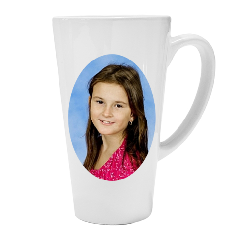 Velký keramický latte hrnek, vhodný pro potisk vlastním obrázkem nebo fotografií. Hrnek průměr 62-92 / výška 154 mm. Omyvatelný v myčce nádobí.